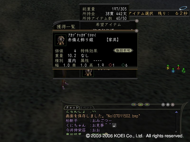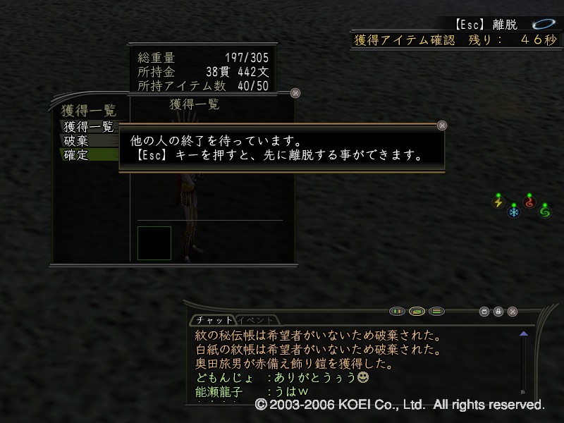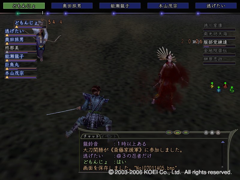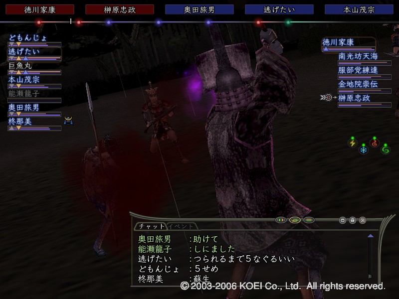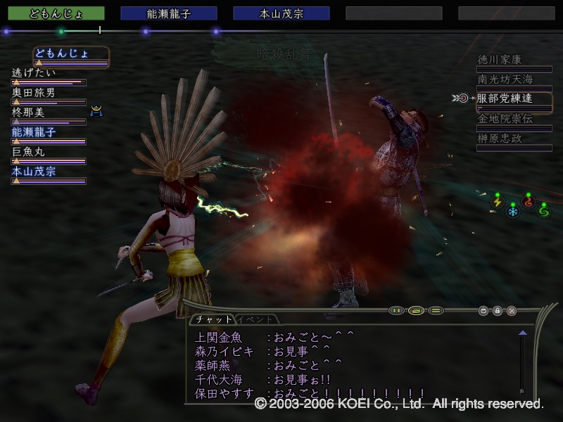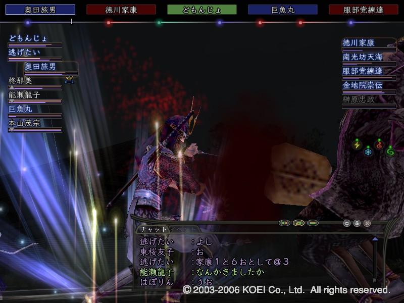 鳥居、板倉までソロQやったとこで 徒党に拉致られる どもんじょは、鳥居ソロQの救援にはいれました^^ 鳥居かっこよすぎ>< しかし、後陣もソロQの時代とは 大丈夫ですかね 薬が活4と蘇生だけの移動実装で、榊原7撃破とか 伐採技能の軍楽旗で、小荷駄武将撃破とか(某軍楽徒党) 徳川側だと、ソロQで中中?の後詰め武将とか こりゃ武将強化がそのうちきそうですかね そんなこんなで 本陣武将をやりに タゲられたのは飛び出してる忠勝7体 きっと、これが家康の準備運動みたいなもんだったんだろうな と。 特にコレといったアレもなく 撃破 戦闘終わってみると 酒井はもう倒されてて 伊井5も、榊原5も、軍師6もとりついてて 暇そうにしてる家康様と遊ぶ事に 家康@6 家康@4 と私設に流れます まぁ、味方の人数なんですがね どもんじょは、鉄砲の6にs行こうとして 家康の守護反撃死で乙 なんとなくもうそれで胸いっぱい^^ 死に戻ってる間に 軍師6が某軍楽徒党によって落ちてました 6で倒すとは!!!と ビックリ しかも糞学だし^^;; 5体になった家康と遊ぶ 1がほとんどつれない 本人曰く「隊列いれて魅力450くらいなのに真剣で1/5くらい」 らしい それに、釣れたとしても 滅却でまともに家康の攻撃くらえば 一刀で必ずビリビリ 外では、団扇?持ってるのにね^^; そんなんで1s行こうとするんですが 反撃死 どもんじょじゃ^^;;; しかも蹴るやつ覚えてないしね もうぽっぽの時代ですね 5を倒して、3の蘇生を通して 完全がきてまた5を倒して で、旗にもれて折れました んー 3の蘇生通したのどもんじょのせいなんですけどね、、、 すみませんすみません、、 長くなりそうなのでとりあえず ココマデ(`` |